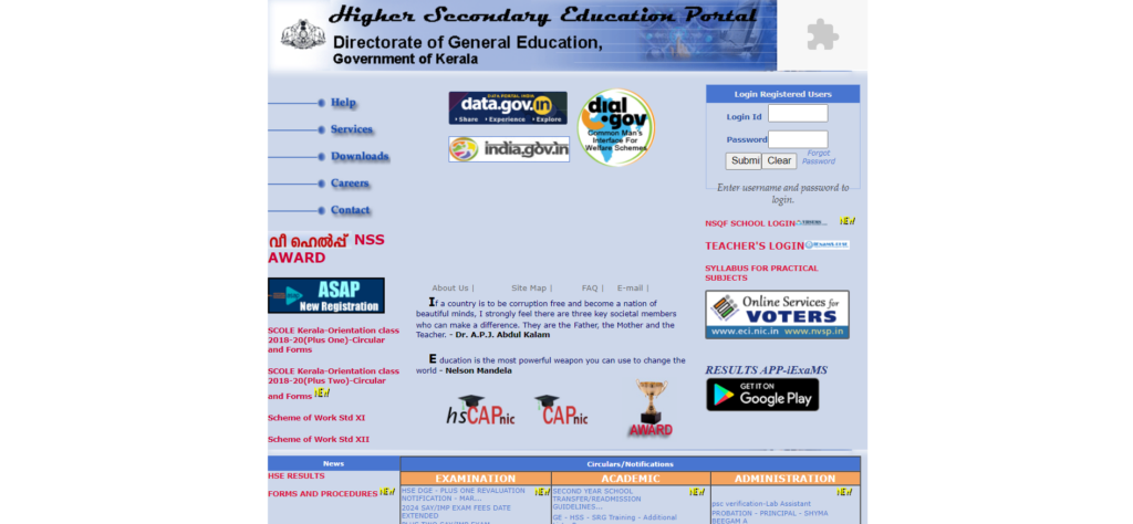 यह केरल बोर्ड की मुख्य आधिकारिक वेबसाइट है जहां छात्र अपने DHSE Plus One Result 2024 देख सकते हैं। छात्र अपने रोल नंबर और जन्म तिथि डालकर परिणाम प्राप्त कर सकते हैं। इस वेबसाइट पर परिणाम देखना तेज और आसान है।