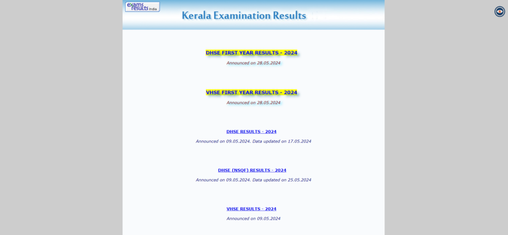 - Link चुनें: होमपेज पर “DHSE First Year Result 2024 Kerala board” लिंक पर क्लिक करें।