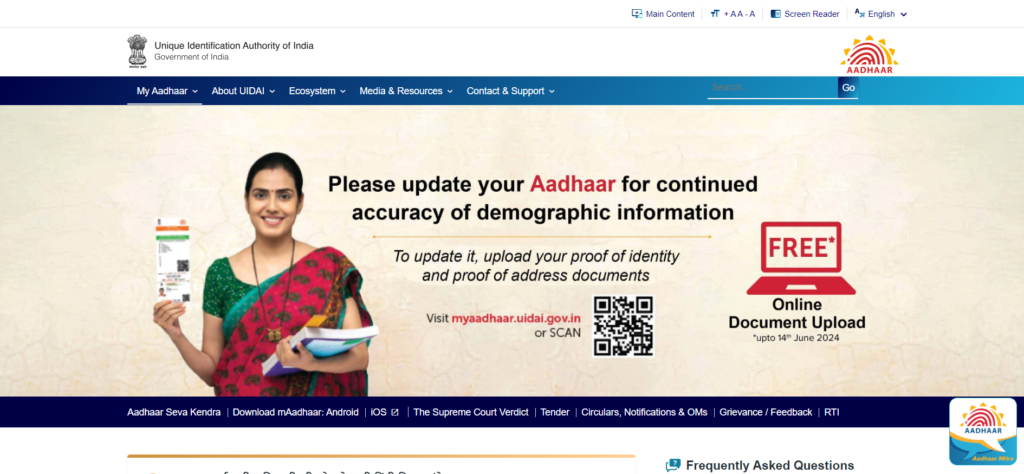 • आधिकारिक वेबसाइट पर जाएं: UIDAI की आधिकारिक वेबसाइट uidai.gov.in पर जाएं।