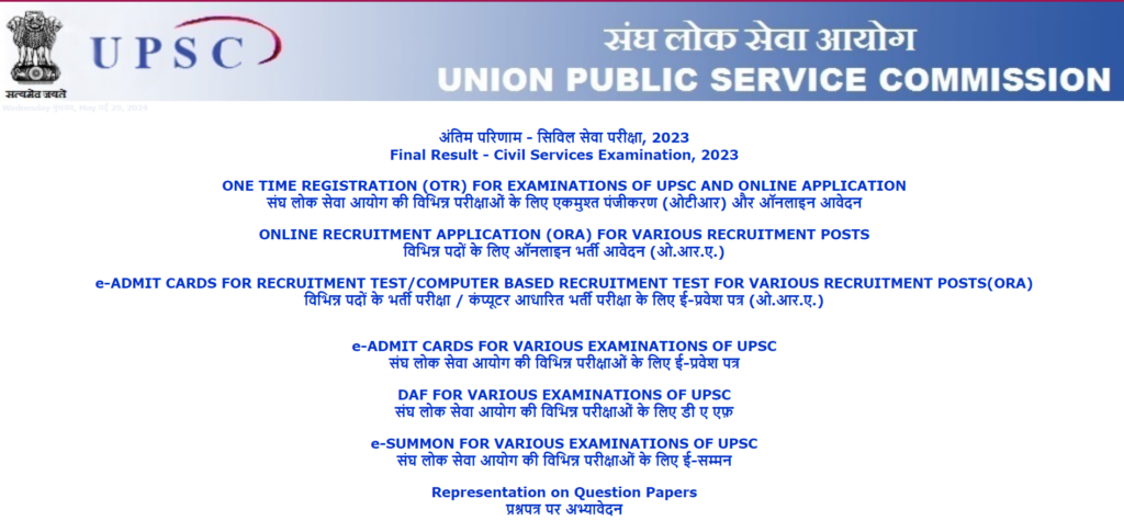चरण 1: यूपीएससी की वेबसाइट पर जाएं